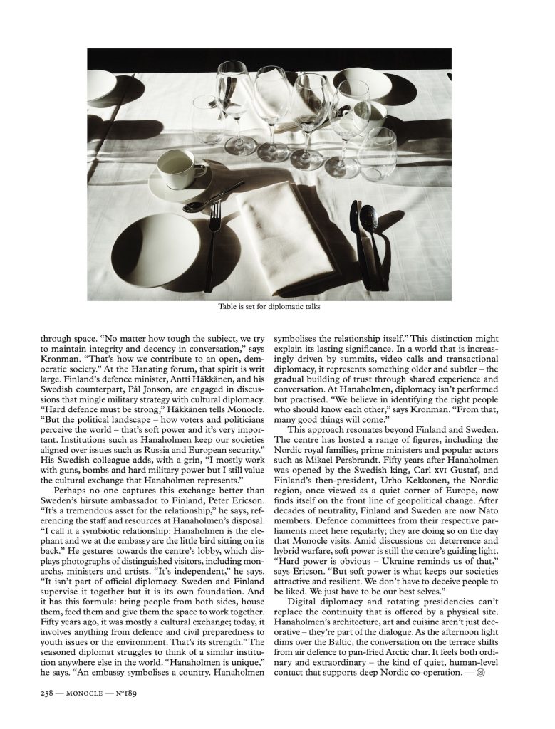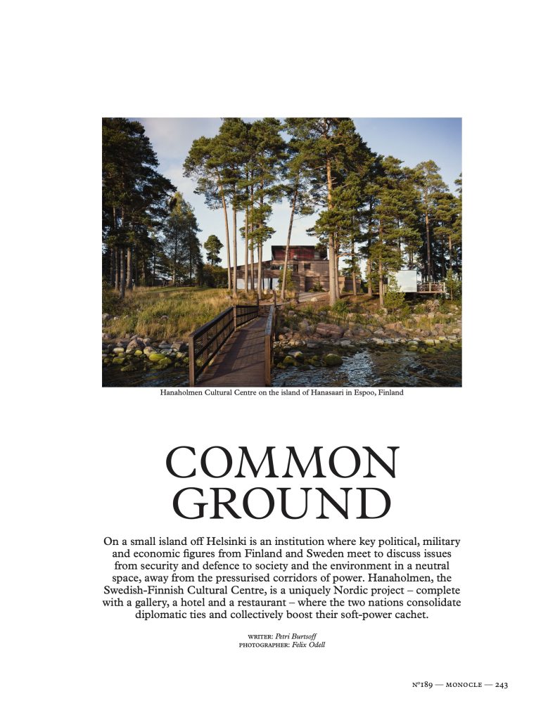 This was a 16-page Monocle Expo on the Finnish-Swedish Cultural Centre Hanaholmen in Espoo, Finland.